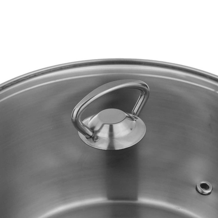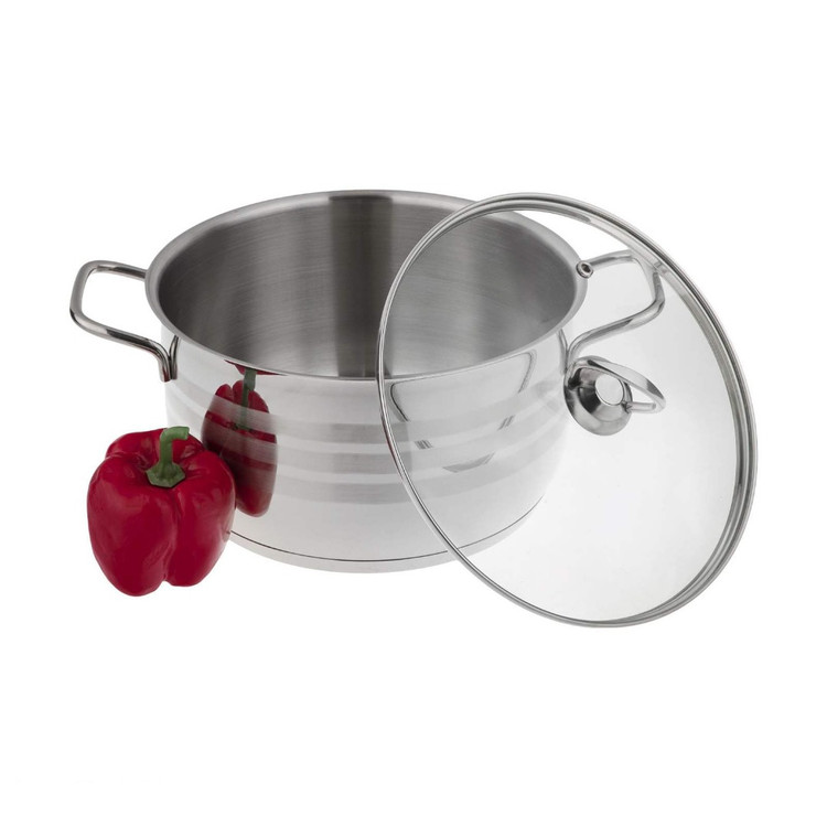 قابلمه از جنس استیل همراه با درب پیرکس که مانع از بیرون ریختن غذا از ظرف میشود. کف چدن کپسول دار این سرویس باعث ماندگاری بیشتر این محصول و مدیریت انتقال صحیح حرارت برای پخت غذا میشود. دستگیره های این کار به بدنه جوش خورده و به هیچ عنوان کنده نمیشود.
