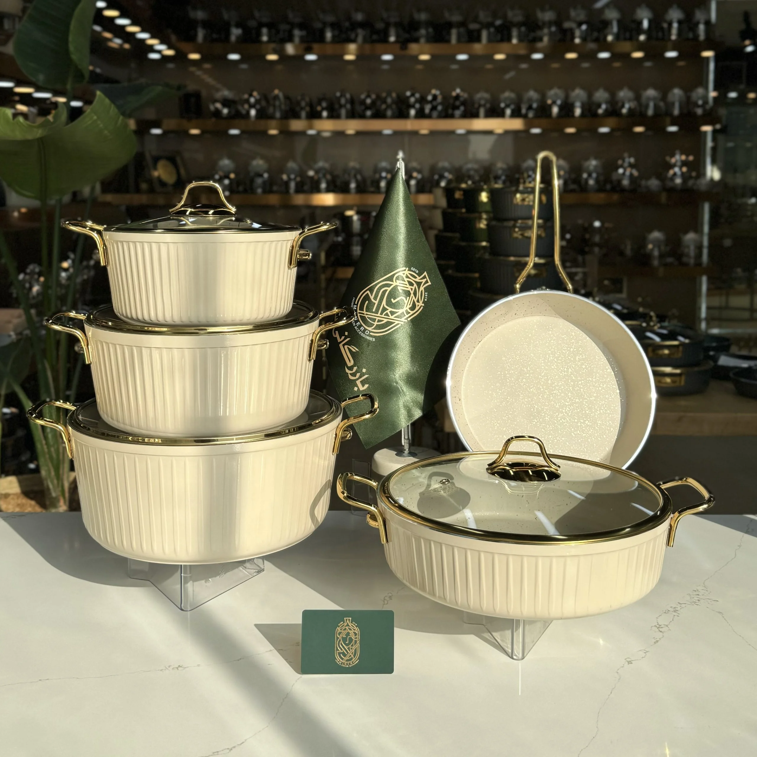 سرویس قابلمه اویز پلاس ترکیه، محصولی با ظاهر بسیار زیبا و تنوع در رنگ و با کیفیت عالی خود به محصولی بی نظیر برای آشپزخانه شما تبدیل شده است. رنگ این محصول کوره ای و پخته شده است و تغییر رنگ نمیدهد. رنگ طلایی دستگیره ها آبکاری شده و سیاه یا هفت رنگ نمیشود.