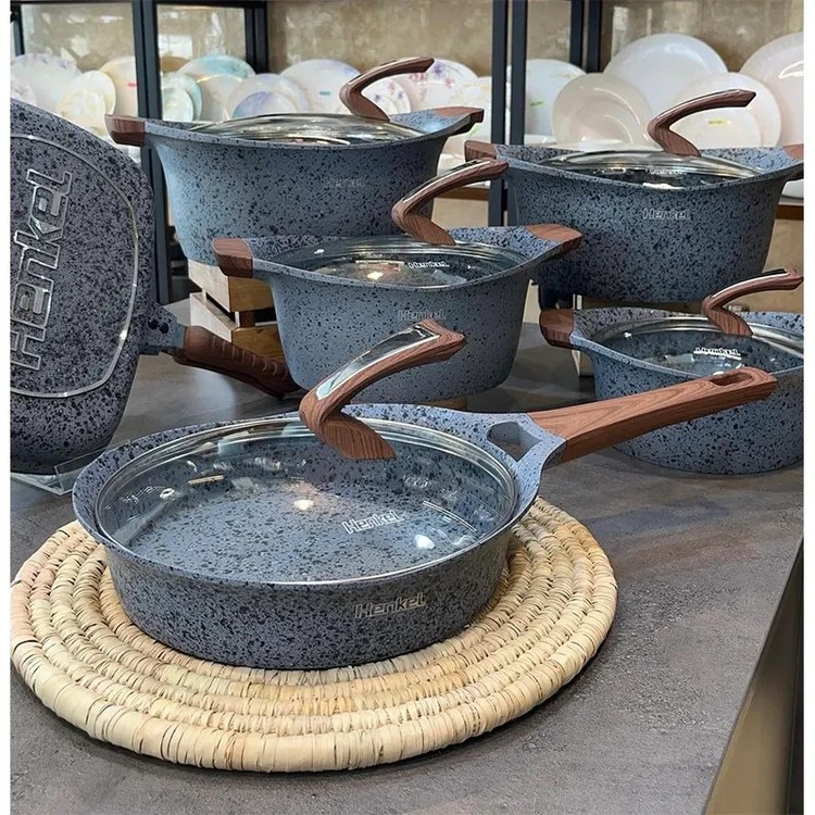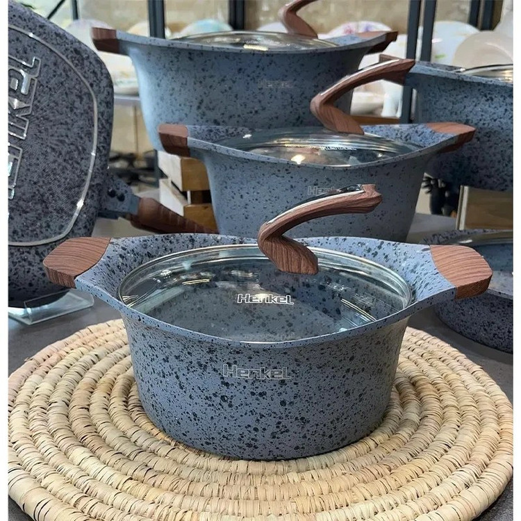 سرویس قابلمه گرانیتی هنکل آلمان دارای گرانیت سنگی گرابلون ضد خش و مقاوم به حرارت است. کفه شعله پخش کن دار این کار باعث صرفه جویی در انرژی میشود و حرارت را به طور یکنواخت به تمام قابلمه میرساند. بدنه بیرونی این کار نیز گرانیت شده و رنگ شعله و مواد غذایی را به هیچ عنوان نمیگیرد.
