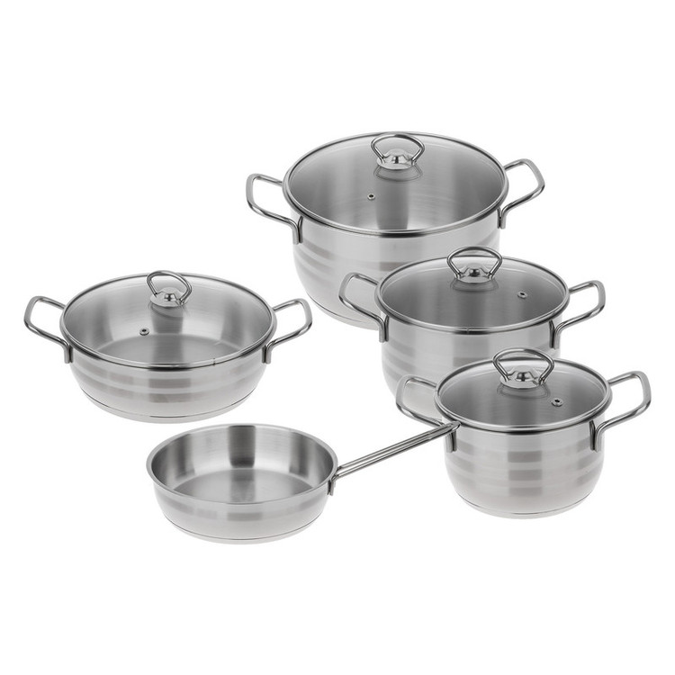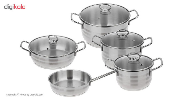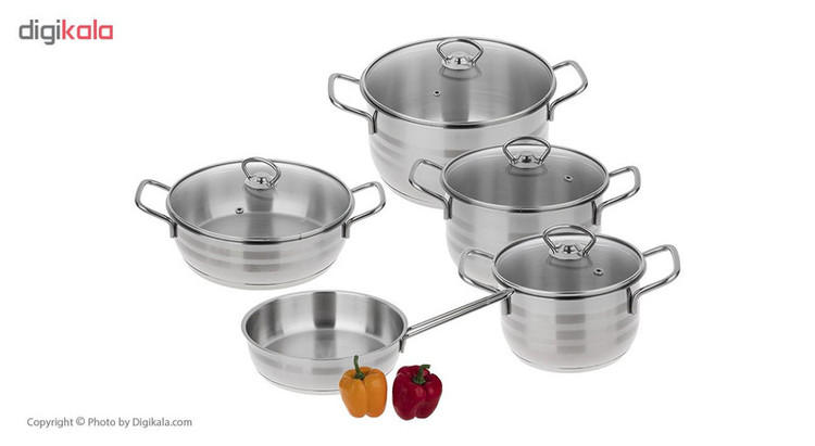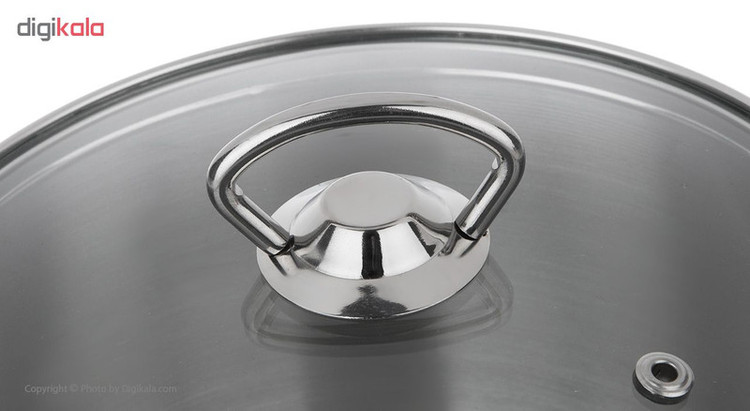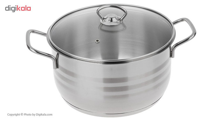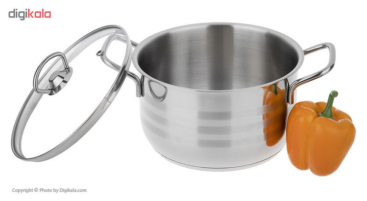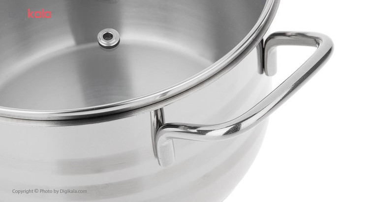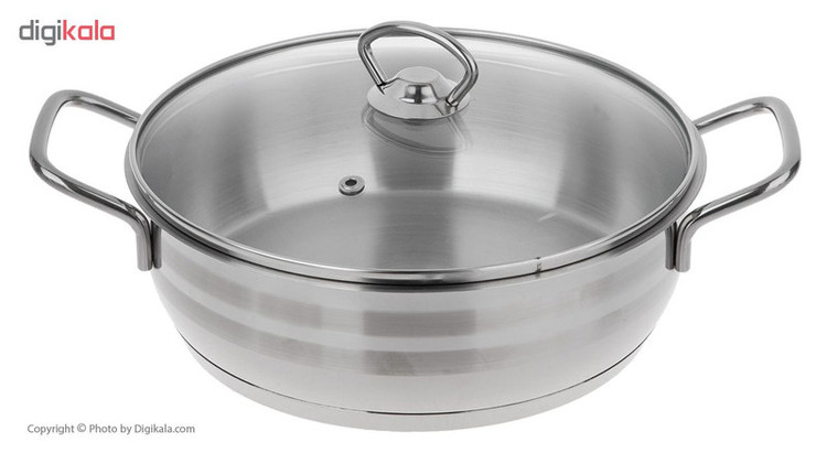قابلمه از جنس استیل همراه با درب پیرکس که مانع از بیرون ریختن غذا از ظرف میشود. کف چدن کپسول دار این سرویس باعث ماندگاری بیشتر این محصول و مدیریت انتقال صحیح حرارت برای پخت غذا میشود. دستگیره های این کار به بدنه جوش خورده و به هیچ عنوان کنده نمیشود.