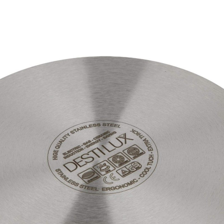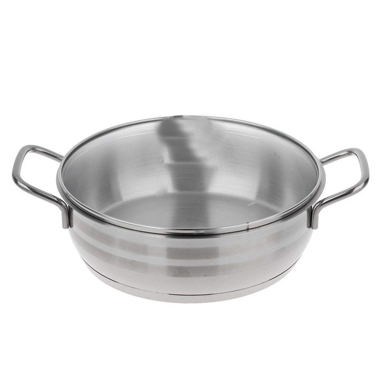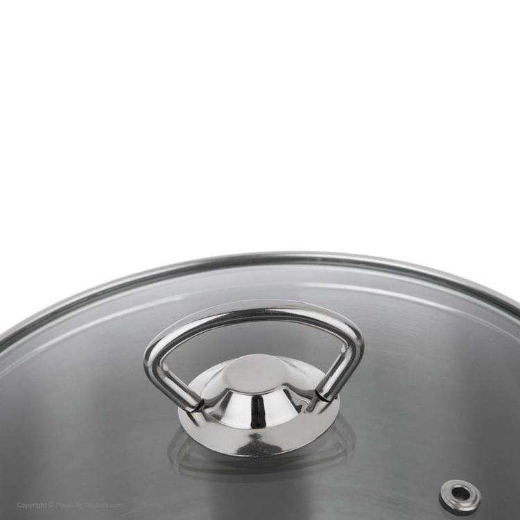 قابلمه از جنس استیل همراه با درب پیرکس که مانع از بیرون ریختن غذا از ظرف میشود. کف چدن کپسول دار این سرویس باعث ماندگاری بیشتر این محصول و مدیریت انتقال صحیح حرارت برای پخت غذا میشود. دستگیره های این کار به بدنه جوش خورده و به هیچ عنوان کنده نمیشود.