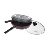 یکی از ظروفی که در همه آشپزخانهها کاربرد زیادی دارد تابه است. به طور معمول ما از این ظرف برای سرخ کردن انواع مواد غذایی استفاده میکنیم و حتی گاهی اوقات برای جلوگیری از سوختن ماده غذایی با پخت بهتر آن، روغن زیادی مصرف میکنیم اما همین موضوع سلامتی ما را به خطر میاندازد. ما میتوانیم با جایگزین کردن ماهیتابه دو طرفه یا رژیمی، در مصرف روغن صرفه جویی کرده تا علاوه بر صرفهجویی اقتصادی، از سلامت خود نیز مراقبت کرده باشیم. تابه دو طرفه کاندید کد 01 دقیقا از همین مدل کالا است. هر دو سمت این تابه را میتوان استفاده کرد و بعد از سرخ شدن یک سمت از مواد غذایی تابه را به سمت دیگر چرخاند. از مزیتهای دیگر این کالا داشتن یک درپوش شیشهای مجزا است تا هر زمان که تمایل داشتیم آن را جایگزین کنیم. جنس این کالا از آلومینوم با روکش گرانیت است و دسته آن از باکالیت ساخته شده است.