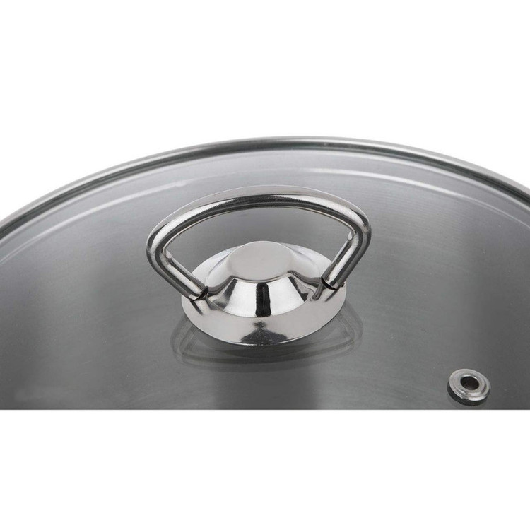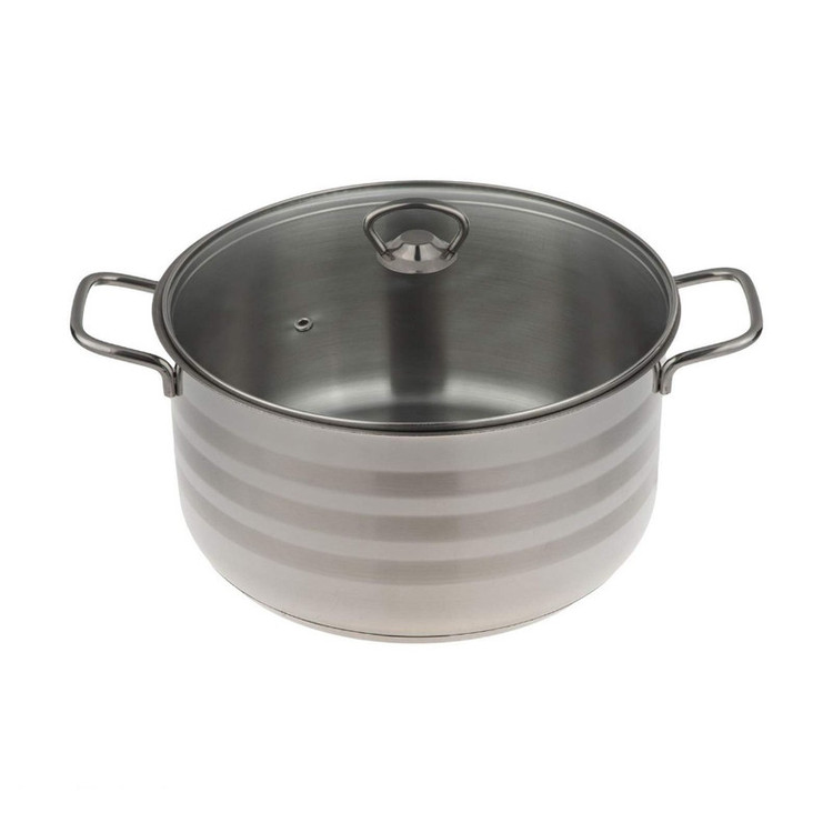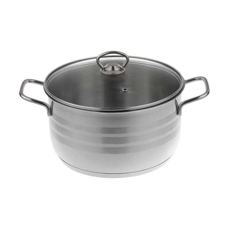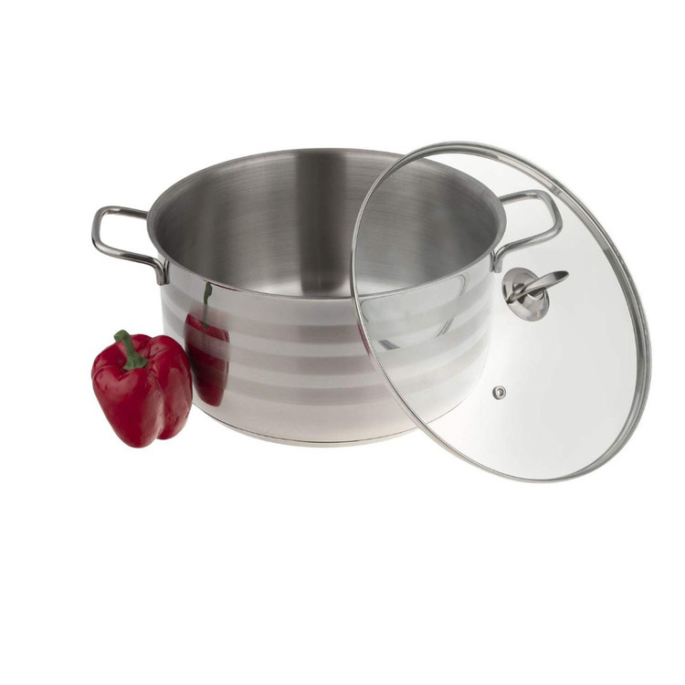 قابلمه از جنس استیل همراه با درب پیرکس که مانع از بیرون ریختن غذا از ظرف میشود. کف چدن کپسول دار این سرویس باعث ماندگاری بیشتر این محصول و مدیریت انتقال صحیح حرارت برای پخت غذا میشود. دستگیره های این کار به بدنه جوش خورده و به هیچ عنوان کنده نمیشود.