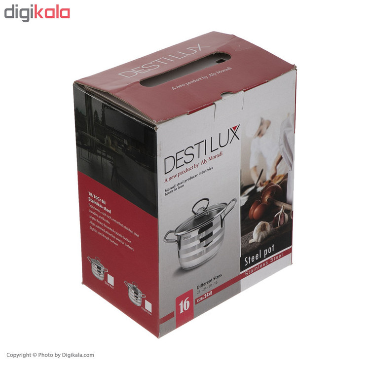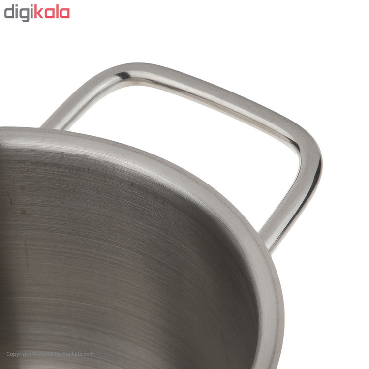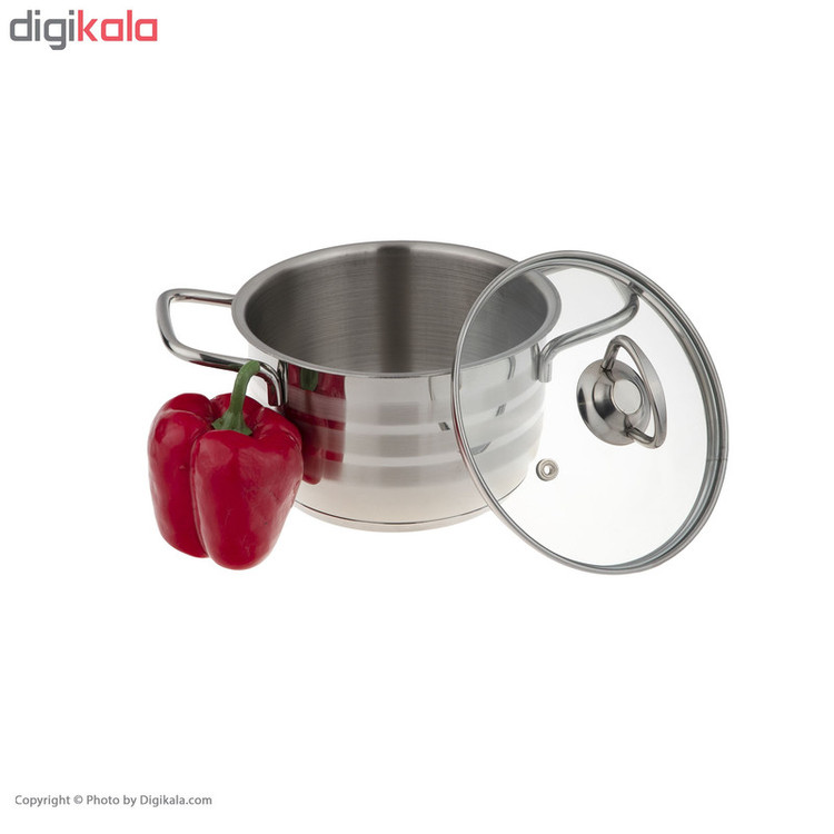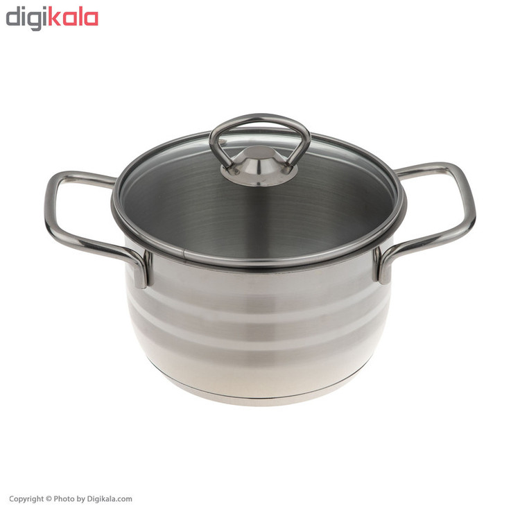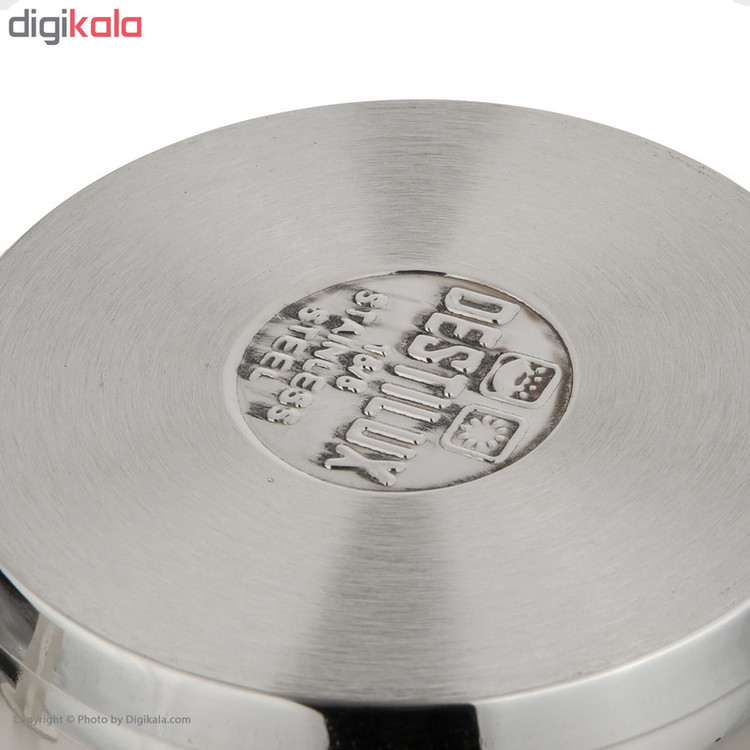 قابلمه از جنس استیل همراه با درب پیرکس که مانع از بیرون ریختن غذا از ظرف میشود. کف چدن کپسول دار این سرویس باعث ماندگاری بیشتر این محصول و مدیریت انتقال صحیح حرارت برای پخت غذا میشود. دستگیره های این کار به بدنه جوش خورده و به هیچ عنوان کنده نمیشود.